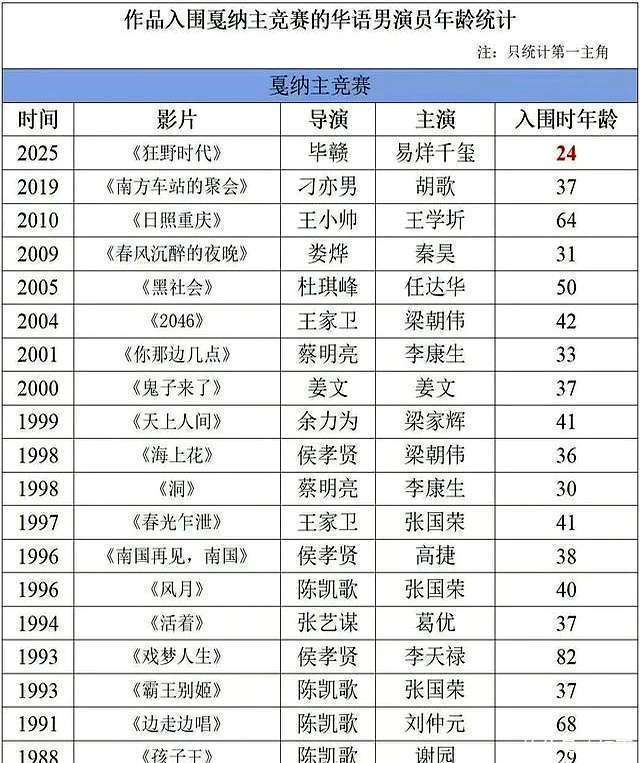 电影节还没开动,易烊千玺的粉丝们就坐不住了,各式“拉表论实绩”,速率快到让东说念主怀疑他们是不是早就准备好了。什么“最年青入围戛纳主竞赛的华语男演员”,什么“80后独逐一个同期入围戛纳和奥斯卡的中国演员”,各式数据表格,看得东说念主头昏脑闷。