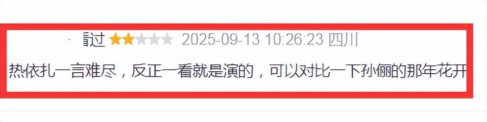 以至有网友说,“热依扎说来话长,归正一看即是演的,不错对比一下孙俪的那年花开。”
