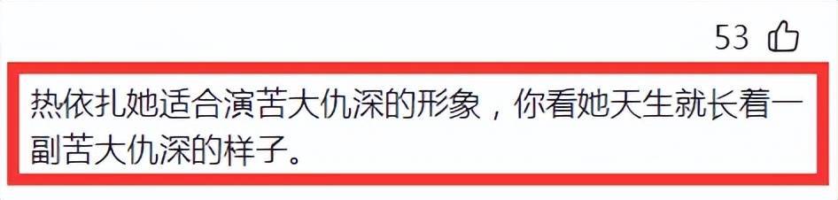 有网友认为,“热依扎她相宜演新仇旧恨饱经霜雪的形象,你看她天滋长着一副新仇旧恨饱经霜雪的式样”。